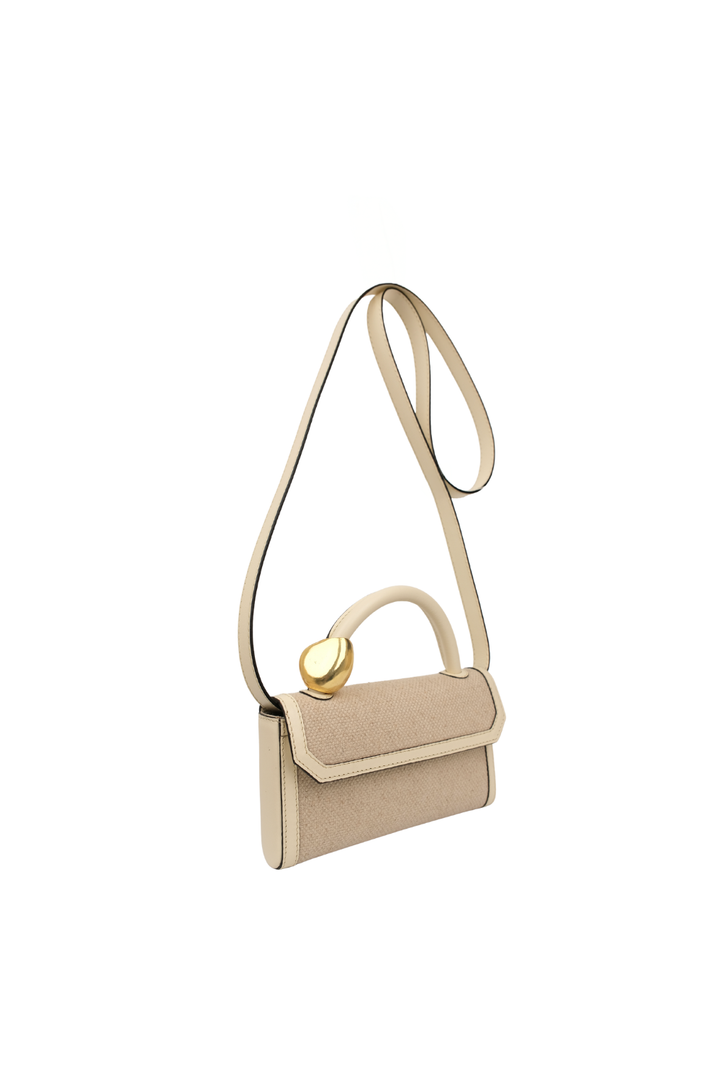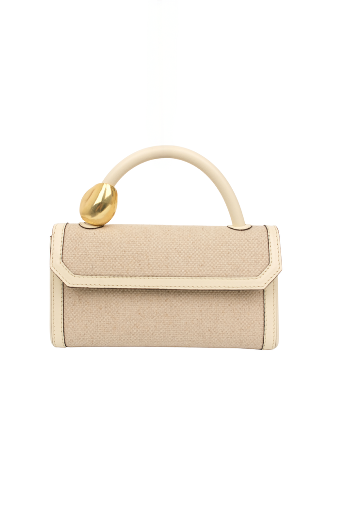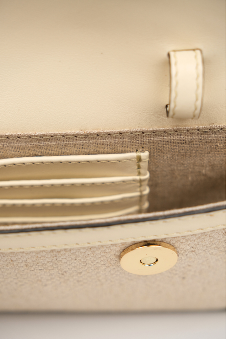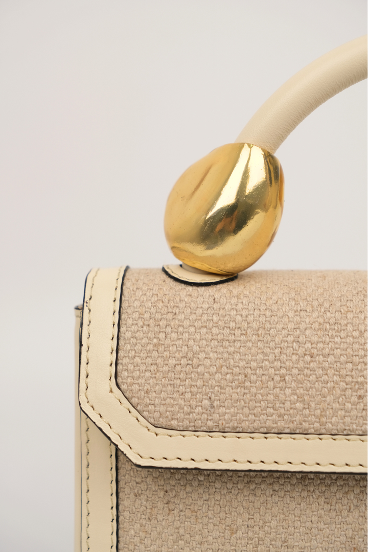 For the Alhaja collection, Ballen's classic tagua seed has been transformed with a gold plating that enhances its natural origin with a touch of light and sophistication. The CARI TAGUA is practical and modern, with hemp fiber details, a perfect piece for carrying your everyday essentials—your cell phone and cards, as it has an interior cardholder. It can be easily carried as a handbag or crossbody bag.
