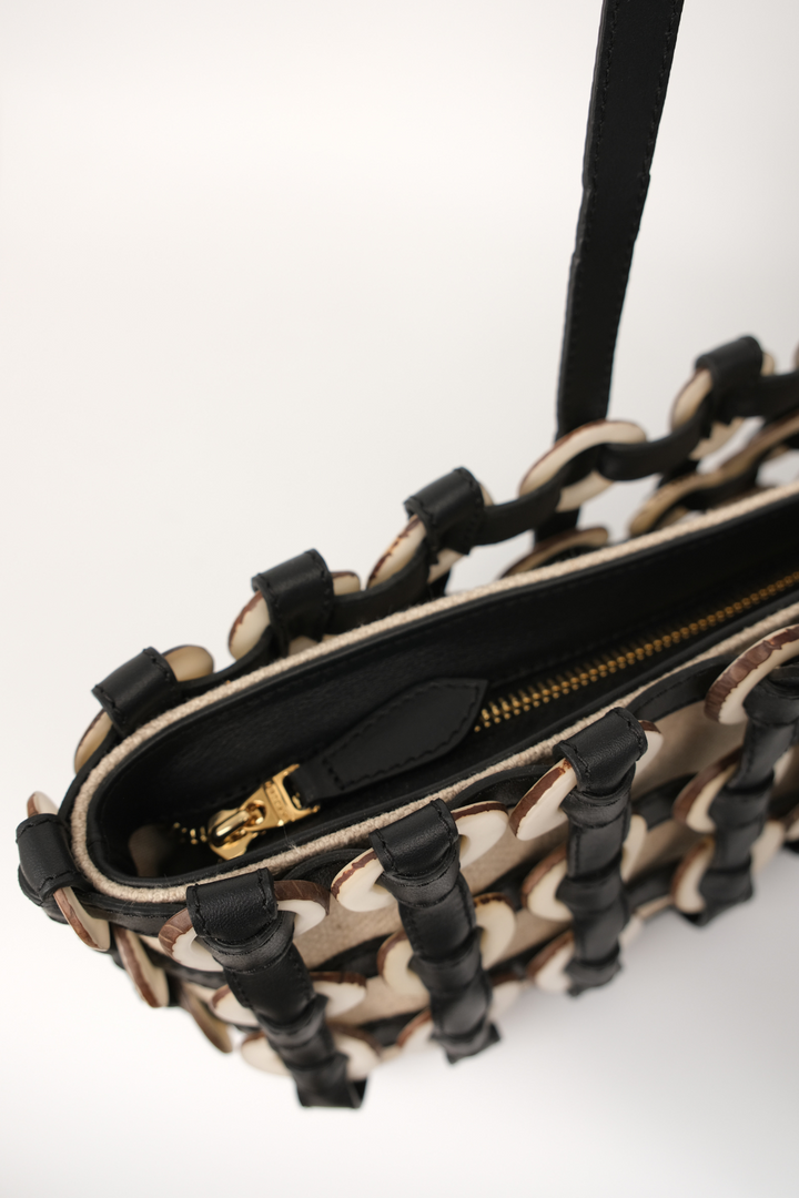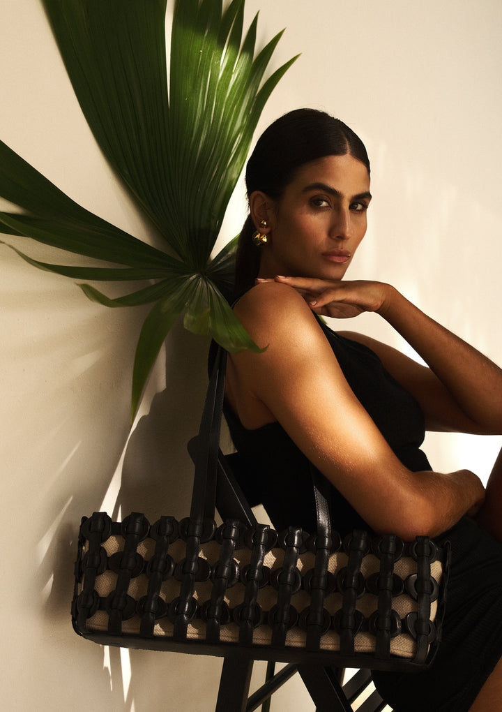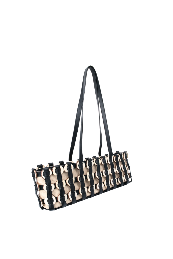 Our DEMI features an innovative baguette silhouette, an evolution of our Tagua Weaving family. Crafted with Italian leather and interwoven tagua seeds, this bag is ideal for carrying your belongings in style. It comes with a removable Hemp lining that makes it versatile and maximizes its utility. Its capacity is ideal for cell phone, keys, card holder and a small makeup pouch.