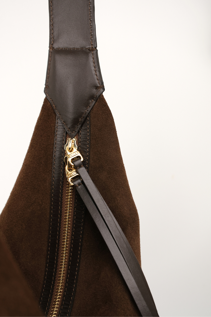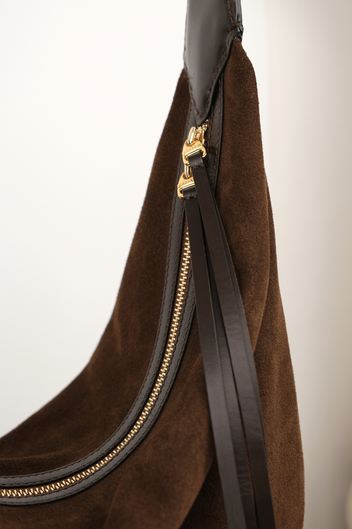 The Messenger Hammock is part of our iconic Hammock family, now in suede, an unstructured bag with a bohemian style perfect for everyday use, in a medium size perfect for every day.