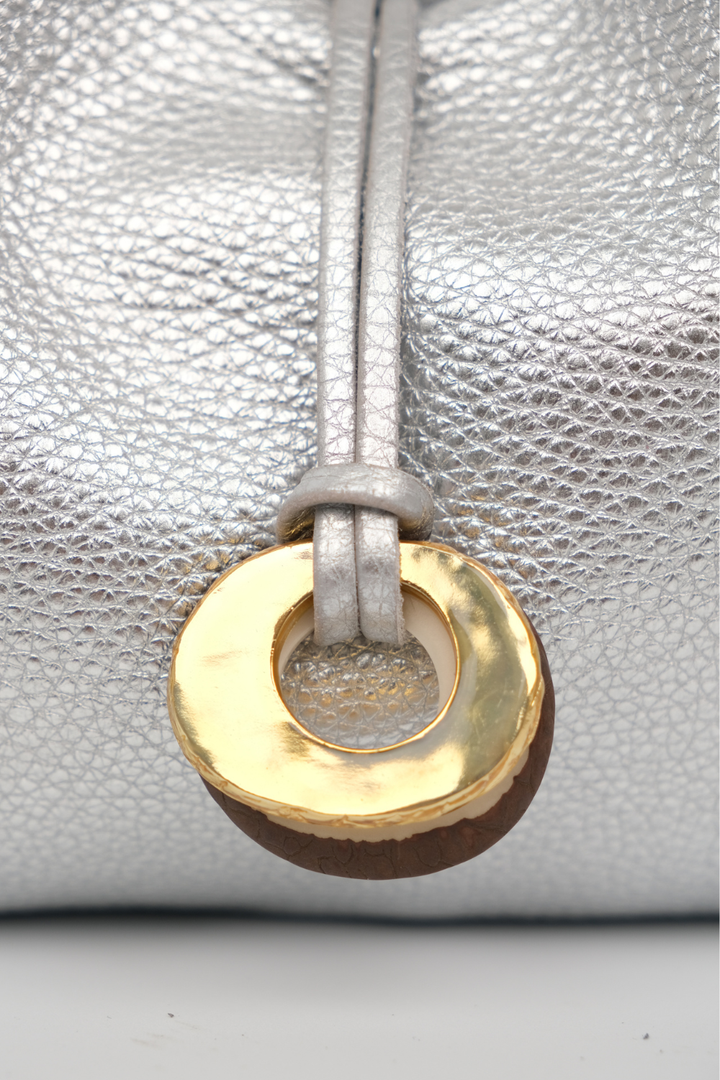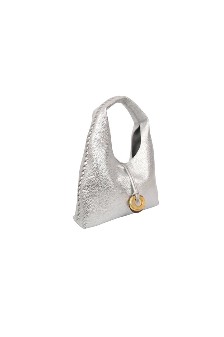 For the Alhaja collection, Ballen's classic tagua has been transformed with a gold coating that enhances its natural origin with a touch of light and sophistication. A modern, unstructured bag with leather side details and a tagua seed closure, perfect for day or night.