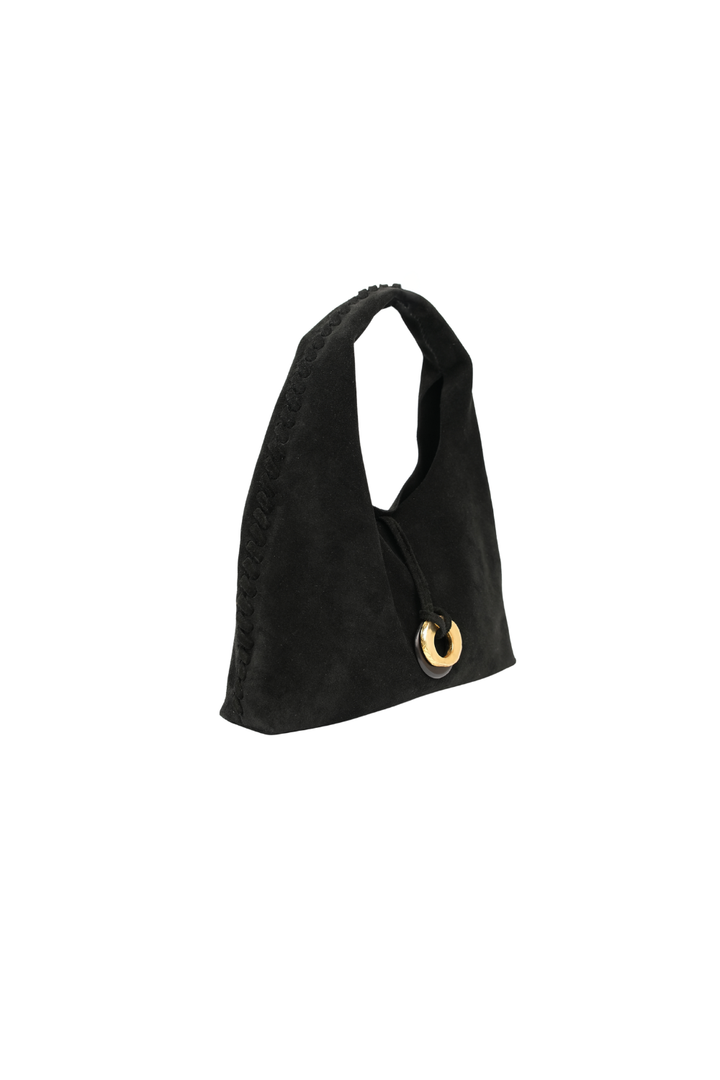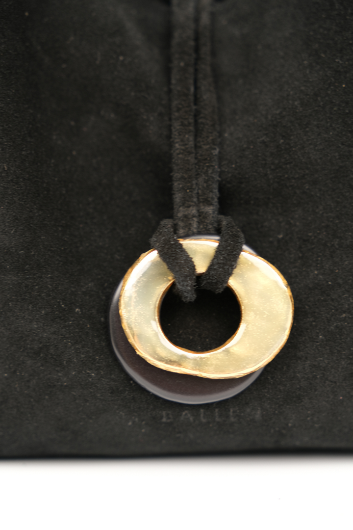 For the Alhaja collection, Ballen's classic tagua has been transformed with a gold coating that enhances its natural origin with a touch of light and sophistication. A modern, unstructured bag with leather side details and a tagua seed closure, perfect for day or night.