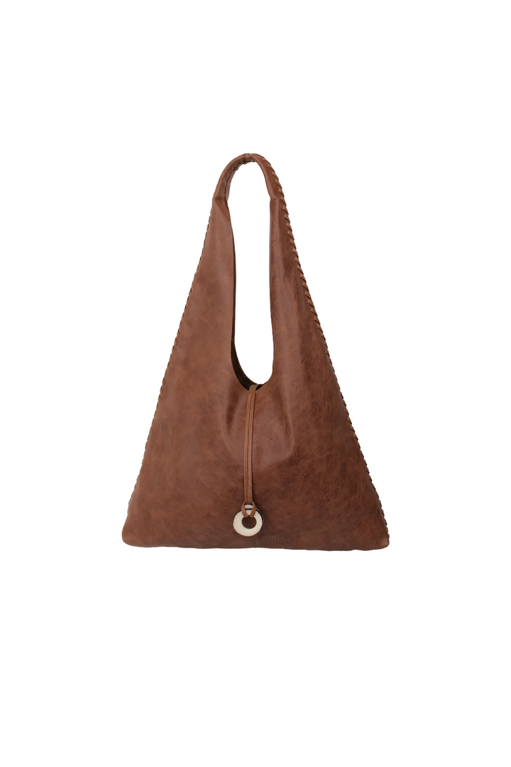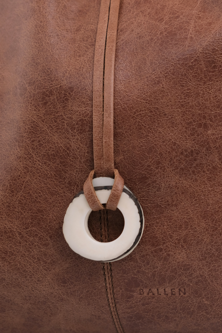 A modern, unstructured bag with enough space to pack everything you need for your day-to-day life, and more. With embroidered leather cord details on the sides and a tagua seed closure detail, it is comfortable and practical.