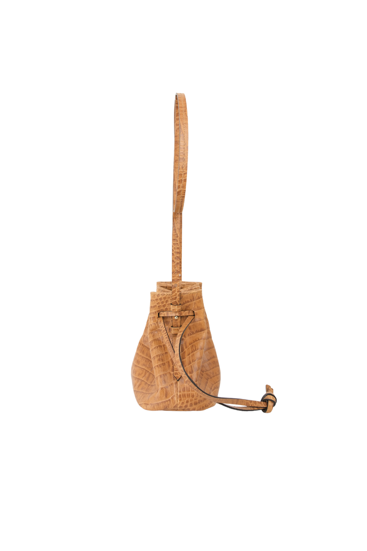 Together with SisterlyStyle, we have reinterpreted our iconic bucket silhouette to create a classic and functional piece. LE SAC in honey-colored leather with crocodile texture is an essential and versatile piece, perfect for day or night, as a crossbody, handbag, or clutch.