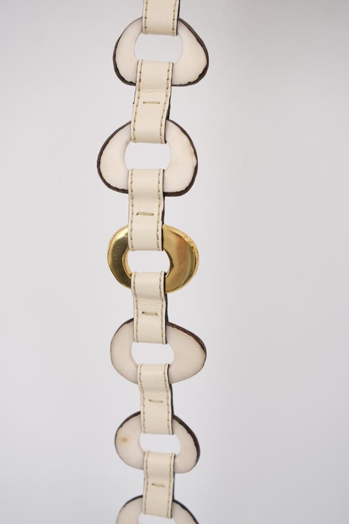 For the Alhaja collection, Ballen's classic tagua is transformed with a gold plating that elevates its natural origin with a touch of light and sophistication. Our TAGUA BELT, made with leather and tagua seeds, is the perfect combination of Colombian heritage and conscious elegance.