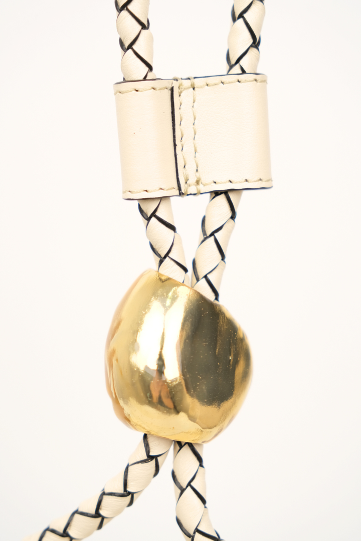 For the Alhaja collection, Ballen's classic tagua is transformed with a gold plating that elevates its natural origin with a touch of light and sophistication. A bag with the iconic braided shoulder strap with elegant proportions and a magnetic top closure. It is characterized by its versatility with a short or long handle to carry on the shoulder or wrist.
